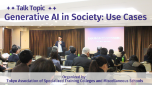 The session was held as part of a themed training program focused on Changes in Social Structures Brought About by Generative AI, with the aim of deepening participants’ understanding of the impact of generative AI on society, education, and corporate activities. Faculty and staff members from specialized training colleges and miscellaneous schools attended the event.